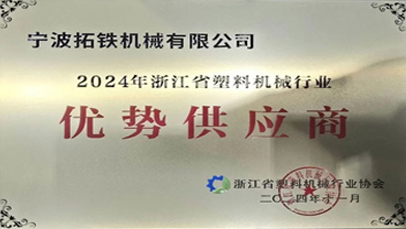 • 喜報(bào)!拓鐵再獲浙江省塑機(jī)協(xié)會(huì)“優(yōu)勢(shì)供應(yīng)商”榮譽(yù) 浙江省塑料機(jī)械行業(yè)協(xié)會(huì)于2024年11月在深圳召開(kāi)一屆二次會(huì)員代表大會(huì)暨二次理事會(huì)議,屆時(shí)公布了“優(yōu)勢(shì)供應(yīng)商”評(píng)選結(jié)果,并對(duì)獲獎(jiǎng)單位頒發(fā)榮譽(yù)獎(jiǎng)牌和證書(shū)。